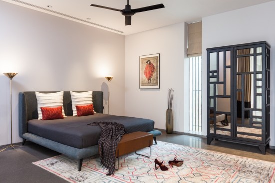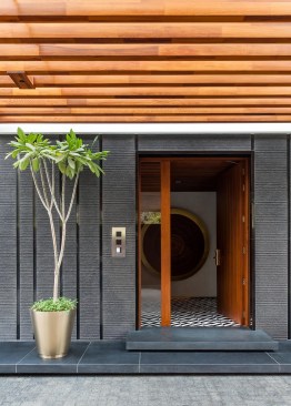 The architectural vocabulary has been kept minimal where clustered variations of timber slats lend contrast and warmth to the monochromatic mediums. The sharp geometry of forms casts a graphic play of light and shadow, animating the planes as the day courses.