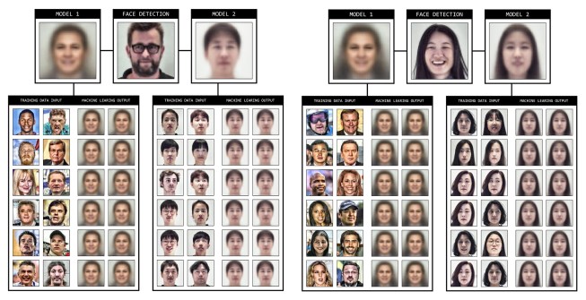 To demonstrate these potential issues, The Living created an installation for the 2017 Seoul Biennale of Architecture and Urbanism that scans the face of a visitor and runs it through two parallel facial recognition models that are trained on different sets of stored head shots. The different models and sets of training data result in two distinct results for any given visitor. “We’re basically creating two versions of reality, of machine learning, to say they’re both just interpretations and neither one is objective or correct, so we have to understand a little more about properties of each one,” Benjamin says.