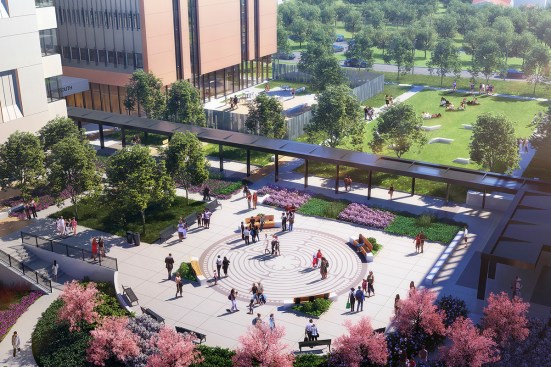 The Louisville VA Medical Center is designed to comply with the Government’s Guiding Principles for Sustainable Federal Buildings. It will include a large photovoltaic array that generates a portion of the center’s electrical energy, green roofs, water use reduction, and optimized energy performance. The biophilic design intertwines architecture and landscape, emphasizing the importance of nature in health and wellness. Key elements include terraces, ample green spaces, a contemplative courtyard, and a linear garden that sweeps the length of the center, connecting to a light-filled indoor concourse that joins a range of spaces with uses such as education, ceremony, dining, and respite.