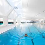 Light: The sectional split brings light deep into the centre of the natatorium plan, where it is reflected or diffused to provide required natural lighting condition. A continuous ceramic fritted glazing band on three elevations and sensors for zoned lighting control respond to the level of natural light.