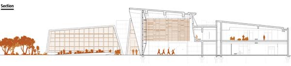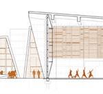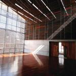 But making a $6 million, 21,000-square-foot building at ease in the township fabric of tiny, one-story houses on little lots requires a nuanced solution. The Ubuntu Centre has a clear presence, yet is scaled not to overwhelm the neighborhood, and it avoids creating an intimidating presence. Field Architecture accomplished this by breaking the program into three main masses, each defined by lofty folded and angled concrete forms: The education wing occupies the street corner, while the clinic tucks behind a low entry piece along the main road; the community hall sits between the two. Second-floor spaces in the education and clinic blocks include offices, classrooms, and study areas. The concrete masses are stitched together by circulation spaces framed in light steel and glass, and each mass sits casually on the site.