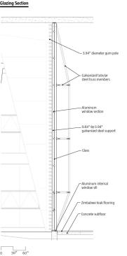 In a locale where plaster, swathing rough brick, or concrete block is the usual finish material, poured-in-place concrete was not a logical choice, but it works. “Here, the final finish was the concrete, so everything had to be done with more care,” Field explains. “And this level of attention began to become the ethic of construction. It was not a new skill the builders had to learn, but rather a new approach.” While the builders, including low-skill local laborers, gained new expertise with concrete, other materials and details were chosen specifically to benefit from local skills. Glazing at the ends of the concrete structures is covered by a trellis of horizontal gum poles—a local building staple—that screen the sun and provide security. “We were using something that was so familiar, that has been used there for generations, so we could just design the method of fabrication to suit skills the community already had,” Jess Field says.