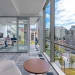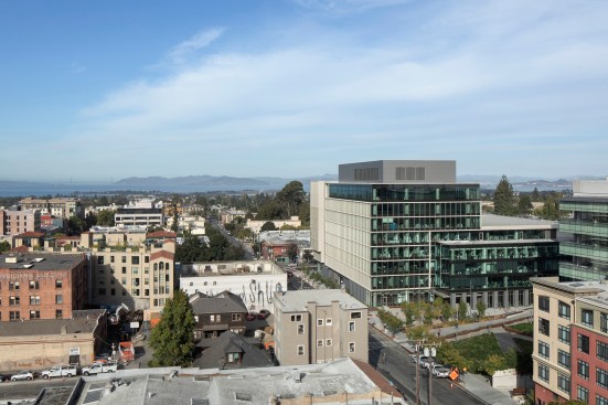 Berkeley Way West introduces a more efficient and thus different—fewer private offices, less square footage per person—way of working and meeting for academics. Careful attention was paid to understanding each department’s culture and needs to help ensure they’d thrive within their new home. For example, Public Health required the ability to draw boundaries around groups writing NIH grants, Psychology favored open and collaborative workspaces, and Education expected private offices with ample windows. In response, the design team developed a flexible “work canvas,” or kit of parts that aligns with UC standards, while allowing for a specific response to the needs of each department. The result is a variety of comfortable, healthy, learn/work spaces that democratize access to stunning views and daylight and feel uniquely “owned” by each group. The speculative office portion of the building was approached similarly, with the goal of offering each tenant the ability to customize their own space while feeling embedded in the community and the city.