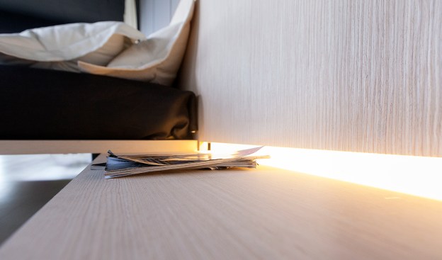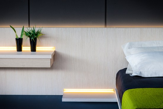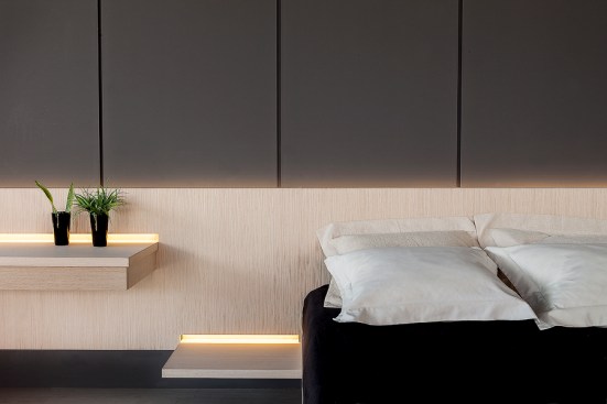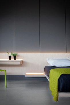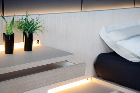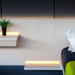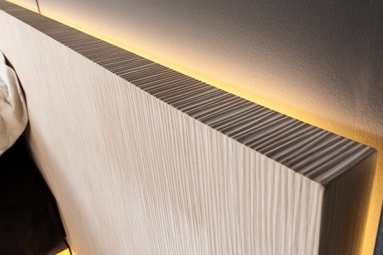 Taking into account the needs of the hotel unit in Greece, the company golden architects ratio designed a single uds surface comprising back bed, nightstand, dresser workplace minibar using selected materials.