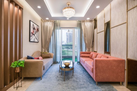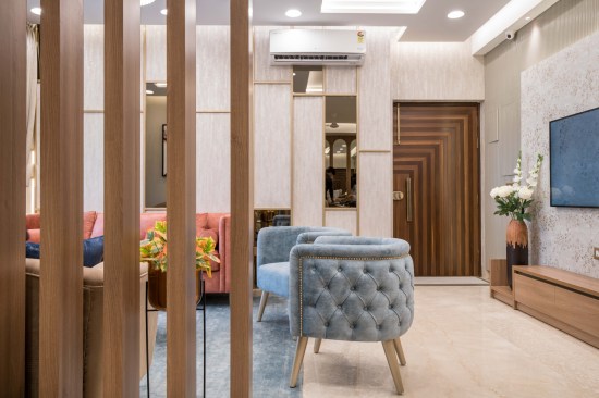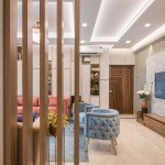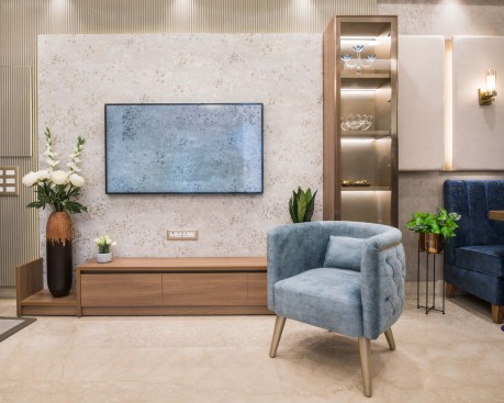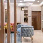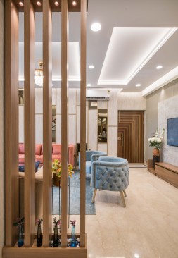 Located in Gurugram, this 1500 sqft house is a plush 3 Bedroom apartment oriented North-East in a housing society. The house breathes an ample amount of natural light because of its orientation and wide UPVC openings, elevating the interiors. Moreover, every room has a balcony overlooking the gardens of the society. Driven by the idea of sanitization and safety, the servant room right at the entrance of the house was replaced as a sanitization room. As one enters, he can clean himself up and then move ahead. The living room opens into the terrace, looking out at the greens around, making the space look bigger and connected to nature.