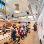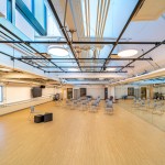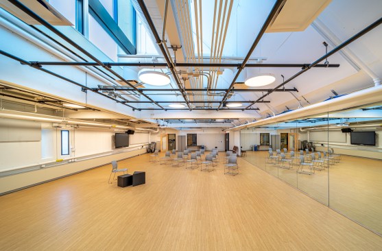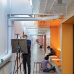 Completed in 1975, Kevin Roche’s landmark project at UMass Amherst is exemplary of his unique approach to mid-century concrete architecture. designLAB’s work focuses on the “Bridge” of the structure: a 600-foot long, 40-foot wide bar of classrooms suspended 30 feet in the air. The Bridge was reprogrammed from exclusively painting and drawing classrooms to a wide range of arts uses, including a theater rehearsal space with supporting scenic design studio and full costume shop.