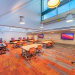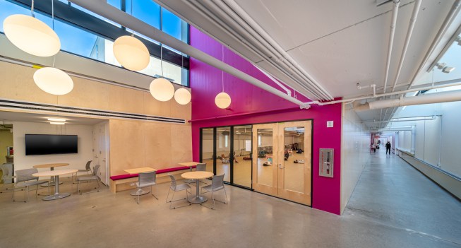 Primary among designLAB’s replanting strategies was a re-thinking of the circulation corridor that runs the length of the bridge. By moving the corridor to the south side of the bridge, the team was able to relocate it under a continuous skylight, bringing daylight into the otherwise windowless 600-foot long span. The move also created common areas at the three access points, thereby creating better wayfinding, collaboration, and social spaces.