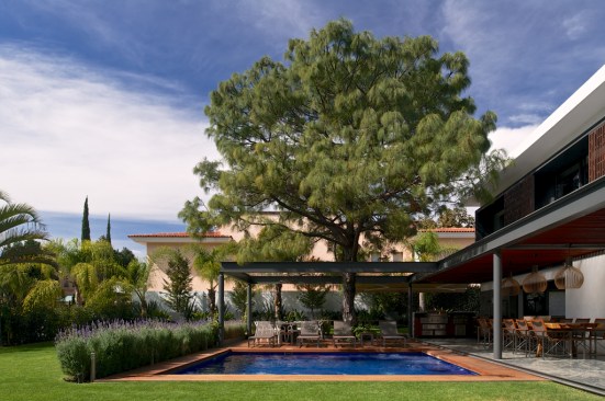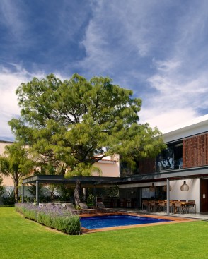 In order to fully understand this house, located in a gated community in Zapopan, Jalisco, it is of paramount importance to recognize the twofold strategy inscribed at its core. On the one hand, as its name suggests, this house springs from the conviction to incorporate into its architectural scheme a magnificent old tree that preexisted on the building site. This tree will become the visual counterpoint to both the garden and its inhabitant’s social activities. On the other, an equally crucial aspect, which also contributed to determine the house´s character, is its distinctive emplacement.