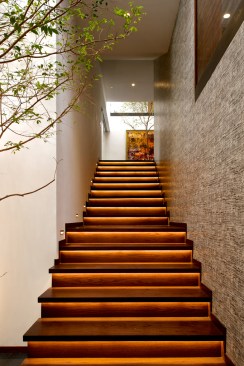 Beyond the special relationship we find between outside and inside space, it is important to notice that the house’s interior scheme is very straight forward: the basement (on the street level) lodges the garage and utility rooms; the ground floor is dedicated entirely to social activities of its inhabitants; and the second floor accommodates its occupants private quarters. The apparent simplicity of the layout speaks of the well-established order underlying the project’s open spirit. Finally, this house reminds us of something we easily forget, that is, that the garden must be as important as the house, for as John Hejduk has written “the sister of a house is its garden”.