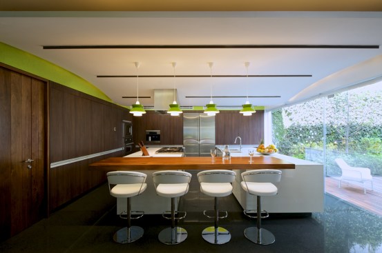 It is because of this that the house manages to distance itself from the outside and therefore looks inwards, into its wonderful garden. Thanks to its open scheme and carefully chosen windows, the ground floor, which consists of a clean succession of clear and harmonious spaces, opens up completely towards the main and secondary gardens, establishing an interesting and never ending dialogue between exterior beauty and inner clarity. This project achieves this in such a way that instead of having a house separate from the garden, it is possible to say that this house lives through the garden, as well as, that this garden participates in the life of the house.