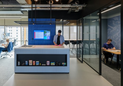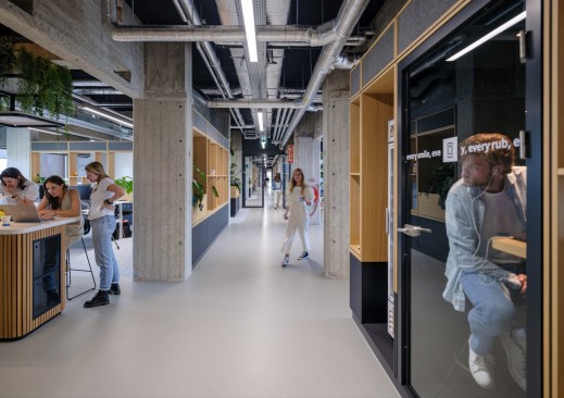 Workplaces of the various Unilever departments are located on the street, each with their own identity, brands and character traits. They form the shops on the street. Brand hubs of Beauty & Personal Care, Home Care, Refreshment, Foods and Food Solutions departments emphasise the atmosphere of these departments, each having their own identity and forming a hotspot where products can be presented and tested.