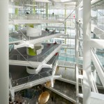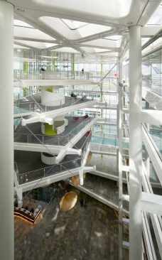 Offices are provided in the restored and extended Crescent and Watergate wings. A new central atrium brings natural air and light into the center of the building, and is navigated via a dramatic sequence of suspended bridges and platforms that create informal meeting spaces. The central plant is relocated to make way for a roof garden that offers alternative work and recreation spaces. The original main entrance on the Embankment is reopened, with adjustments for universal accessibility and improvements to infrastructure, parking and vehicular drop-off.