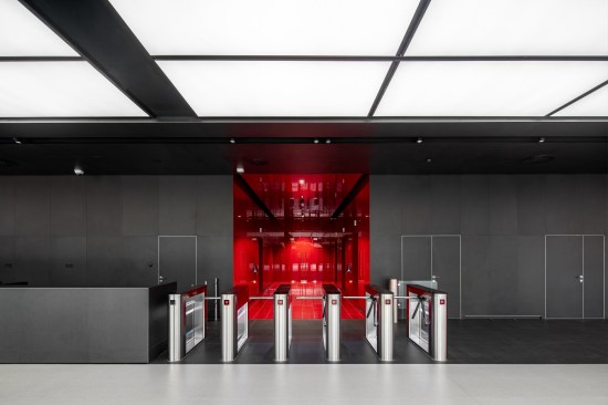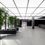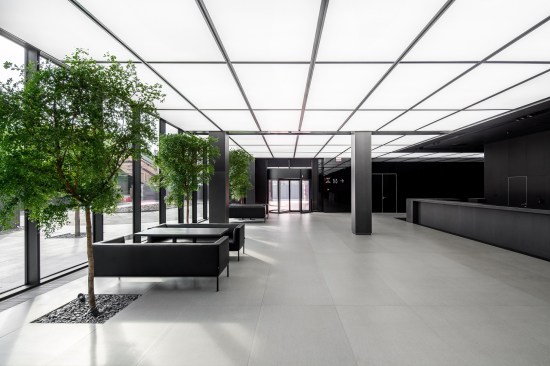 Despite the relatively large area of the object (about 700 m2), only two materials were used in the interior decoration – Laminam porcelain tile and glass. The designers of MONO Architects chose only one material for the cladding, as this made possible to achieve the feeling of a single space, not overloaded with unnecessary details and not distracting from work. Transparent glass walls provide the most natural lighting throughout the whole day.