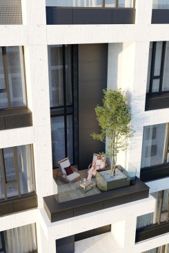 Each block will have a courtyard, well-equipped on the roof of the stylobate under which the parking is located.