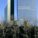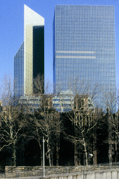 One of the forty-story towers was the first phase of the master plan to be constructed, followed by the second tower in Phase II. These two buildings contain office space, meeting rooms, a hotel, restaurant, health club and apartments for a total area of 925,000 s.f. A single hotel lobby serves both towers while each office portion has a separate entrance.