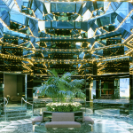 The reflective insulating glass cladding of the towers is a uniform grid which accommodates both the office and hotel floor heights and emphasizes the strong minimalist structural form of the buildings. The towers’ shape is derived, in part, from the variations in use and the desire to establish a strong relationship with the adjacent low-rise buildings and the United Nations Secretariat.