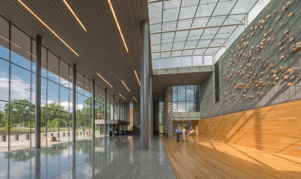 It takes real skill to add the 1.2-million-square-foot U.S. Coast Guard Headquarters to St. Elizabeths National Landmark campus in Washington, D.C., without detracting from that historic setting. The first phase of the Department of Homeland Security’s consolidation project, the Coast Guard’s new site slopes down 115 feet, the building stepping downhill toward the Potomac River. Green roofs make the structure disappear when seen from above.