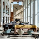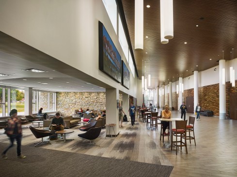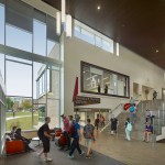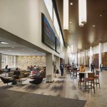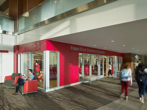 The newly renovated University Center creates a dynamic, student-centered facility that kindles learning opportunities and collaboration between students, faculty, and community. A comfortable “living room” for students to meet, relax, study, and socialize, the University Center is transformed into an architectural centerpiece to enliven the nearby quad and showcase the student life of FSU. It is the place to “see and be seen” and a hub for student life. With its transformation the University Center becomes a front door and gateway to the campus, a window into student life and a resource for academic and social activities. The center will be an open and engaging place for the University and Big Rapids community to come together. Organized along an internal “street” which flows from the campus ‘front door’ past the event rooms, gallery, and marketplace dining, the main street graciously steps down toward the center of campus to wrap along the quad in a dramatic double-height student lounge space. The transparency of the elevation into quad-level lounge will captivate the campus community as it displays student life 24/7. The new additions to the north and west seamlessly link many of the facility’s most important features and functions. The new University Center provides connections for faculty and students, space for formal and informal learning, and achieves a real “wow” factor through the use of design elements that showcase the activities within through light, color, and rich building materials.