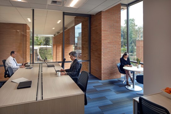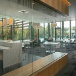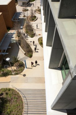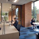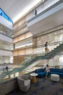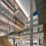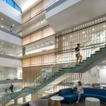 Fulfilling the vision of this building as a multidisciplinary space, the planning and design of the building centers around the gathering and interaction spaces. A variety of collaboration zones are placed strategically throughout the computational zone to promote travel, communication and scholarly activity. Key features, such as the write-up space located along the wet laboratories and casual gathering spaces, encourage collaboration and connection. Visual and physical connectivity in the four-story open atrium further invites socialization and connection between floors.