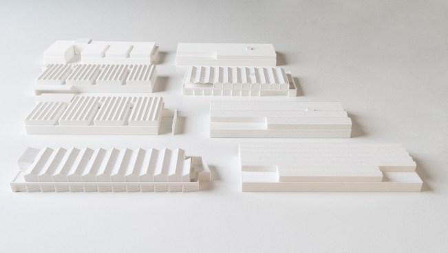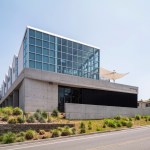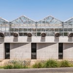 The gables of the surrounding greenhouses inspired the design of the Plant Research building, which is expressed in the upper-level glass roofs. The serrated concrete walls at the ground level and the array of fans running across the structure’s south elevation compliment the rhythmic quality of the upper-level greenhouses. The minimalist use of concrete, steel, and glass allows the building to display its overall function and historical connectedness all in one stroke.