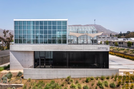 “It’s really a machine, a tool for research,” says Yan Krymsky, design director of Perkins&Will’s Los Angeles studio. “But beyond that, we wanted to create a structure that spoke to the legacy of the university.” That’s a legacy steeped in a commitment to advancing the agricultural and natural sciences. It goes as far back as 1907 when the University of California Citrus Experiment Station, which later became UCR, was constructed. The new facility sits within a district of greenhouses originally built on the main campus in the 1960s.