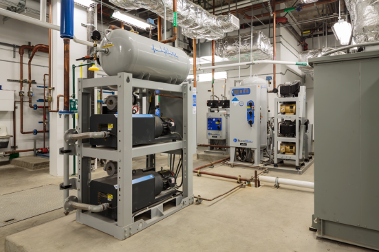 Within the project, dry, computational laboratory space is balanced with traditional wet laboratories that are served by an extensive array of equipment and procedure support space. These functions are complemented by administrative suites for defined research groups headquartered within the building.
