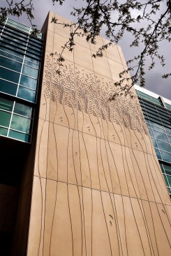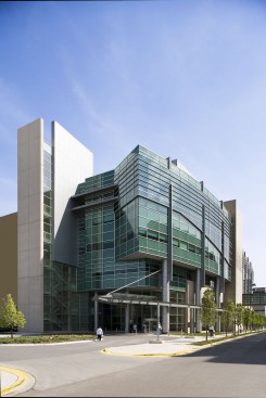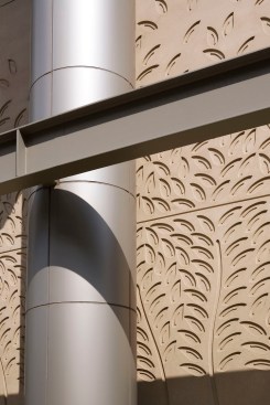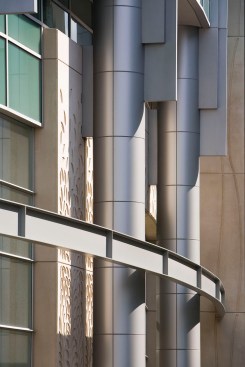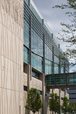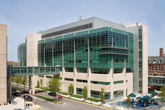 Building Characteristics The project site is located on the east side of South Maryland Street on the corner of South Maryland and East 58th Street. It is a seven story, 242,000 square foot building which houses the following functions: patient and family services, including radiology and the child life department, are located on the first floor, along with administrative and support areas. The second floor contains the acute care/neonatal intensive care unit. The pediatric surgical intensive care unit, operating rooms and cardiac cath lab are located on the third floor. The fourth floor includes the pediatric medical intensive care unit and the transitional care unit, while inpatient medical/surgical units are on the fifth and sixth floors. Mechanical and equipment occupy the seventh floor penthouse. Architectural Characteristics and Design Ideas The design concept emphasized on the building’s exterior is based upon the idea of learning and knowledge and a respect for the history of knowledge on the UCCH campus. One manifestation of the design concept is a subtle patterning cast in the precast concrete panels that surround the base of the hospital. Recalling the large elaborate and beautiful typeface characters found in many children’s books, this patterning is designed to appeal to a child's sense of discovery. Additionally, it alludes to the ivy that is prevalent among many of the campus’s gothic buildings. Another manifestation of the design concept is the metal panel "book ends" of the building. These panels are located on the two main stair towers at the north and south ends of the building. The building incorporates a number of gothic characteristics as a means of integrating it within the campus setting as a whole. As in many gothic buildings, the base on the building is very solid and heavy and transitions to a more transparent glass and aluminum curtainwall framing system as it reaches the highest point. Many gothic buildings employed the use of buttresses in order to introduce more light into the interior spaces of the buildings. This idea has been represented with the use of precast columns at the base of the building that serve to support large vertical aluminum “buttresses” at each column bay and allow for large expanses of glass as the building grows in height. It is with these ideas in mind that we have attempted to connect the new Children’s Hospital with the intellectual environment of the University of Chicago, while at the same time appeal to the intellect and sense of wonder in children of all ages.