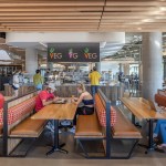 The Community Commons conveys a message of openness and invitation through transparency that invites participation—places where you can see yourself and where you can express yourself. Food is used strategically to unite the entire community and moves the campus towards a centralized dining system. Flexible, open, and visible spaces welcome and reinforce a sense of belonging that is key to keeping students on campus and support their success.
