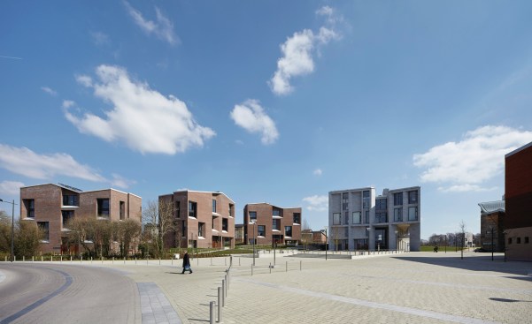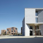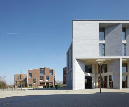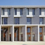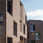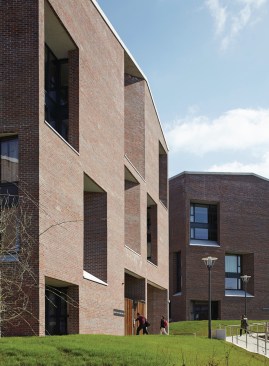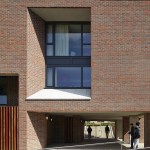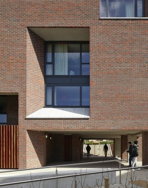Brick follows through to the residences from the existing accommodation buildings behind. Here the material is given depth and the facades deeply carved providing a form of threshold between the domestic interior and the public space that they overlook. All living spaces address the public space to the south east with the more private study bedrooms facing north east or north west.