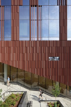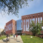 Poised at the threshold between the historic central campus and the modern science and medical campuses to the north, the BSB creates a dramatic gateway and defines a new life sciences district. Taking cues from both campus neighborhoods in color, texture and scale, the building’s fenestration presents the BSB with a singular and unique identity that softly transitions between the two. Adjacent to U-M’s Life Sciences Institute, designed by SmithGroup, and the A. Alfred Taubman Biomedical Science Research Building, designed by Ennead Architects, the Biological Sciences Building completes development of the university’s life science precinct – an effort which began more than two decades ago.