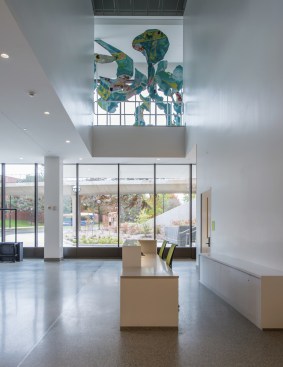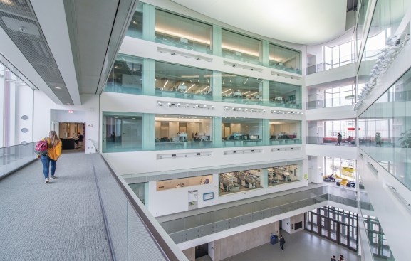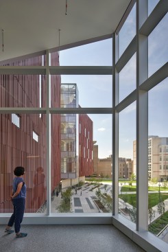 The facility’s layout and design are a dramatic departure from traditional rectilinear academic research environments that are siloed by department and closed off from the public. BSB encourages collaboration and puts science on display in fresh new ways.