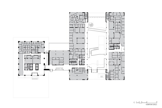 The EERC provides a centralized new home for the Cockrell School and defines the engineering precinct at UT Austin, activating that edge of campus and mediating between the contemporary buildings in the area and the core campus. With a comfortably-scaled sequence of spaces, the EERC mitigates a thirty-foot grade change across the site to Waller Creek while creating new campus connections and routes of access. The integrated building and landscape design, including shaded walkways and landscaped open spaces and a height setback for the entry, reference the historic campus using modern idioms. The building materials likewise hearken to the traditional campus with the use of local Texas limestone and ornamental metal work in stainless steel and zinc.