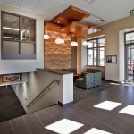 This unique student residence hall incorporates the University of Wisconsin-Madison’s standard room and bathroom arrangement, fits on a small multi-tiered site and has exterior aesthetics that complement the surrounding historic area. The building is home to a 1,000 sq ft top-floor greenhouse and an environmental-oriented learning community, combining curricula in sustainability, energy efficiency and agriculture. The building accommodates 172 residents in a smaller, community-style building designed to promote collaboration and interaction. Spaces include double rooms, with bathrooms shared by clusters of four to five rooms, a two-bedroom apartment for Residence Life staff, a classroom, main building lounge, recreation room, laundry room, music room, a study den social lounge on each floor, as well as four staff offices and a conference room. The residence hall is home to members of the GreenHouse Residential Learning Community, which consists of 86 residents in double rooms and incorporates a functioning fourth-floor greenhouse to further students’ goals of learning to live more sustainably. The Leopold Residence Hall is built over an existing parking lot located between several other residence halls, tennis courts and the Allen Centennial Gardens and Holt Commons. To fit within the existing vernacular and reflect the Lakeshore area, materials incorporate aspects of the local palette and historic area to create a modern, timeless building. Named after a UW-professor and renowned conservationist Aldo Leopold, the building was designed and constructed with renewable materials, energy efficiency and environmental design in mind. The LEED Gold Certified building is a learning tool for students, the campus and greater community. Sustainable strategies used include: operable windows, dual-level lighting, daylighting, an air and energy recovery wheel, solar hot water panels, wind power, rain gardens and biorention areas, native and adaptive plants, and interior materials with recycled content and low VOCs. In addition to the greenhouse which is used to plan, grow, distribute and consume produce year-round, students can track their energy use online and observe how rain gardens and native plants affect their environment.