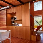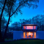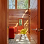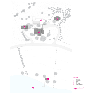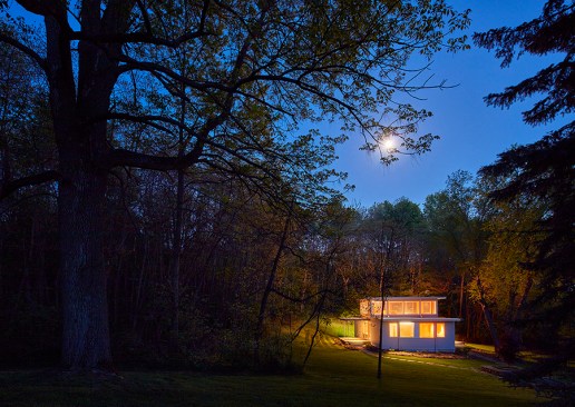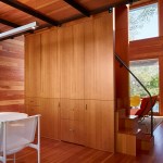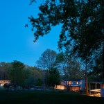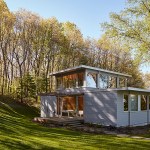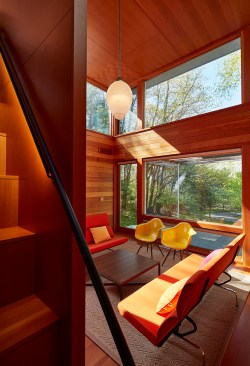 The Upper Lake Jeptha Guest House is the latest addition among the cluster of small buildings that comprise an ever-evolving, beloved family compound on a lake in rural SW Michigan. The “just far enough away” Guest House is positioned to contribute to and better frame the family’s exterior social spaces, simultaneously turning and fronting the lake beyond. Composed of calm and muted, carefully curated materials and details, it maintains a stylistic consistency across the multi-building property. In contrast to the cool weathering gray exterior, a refined handling of Douglas fir wraps the interior, a kind of geode. The intimate 960 square foot cottage is all a guest could need. A small eating nook, a living/communal area, flanked by two-bedroom suites. A central wood-clad volume divides the social zones, cleverly concealing cupboards, appliances and an efficient stair. A wooden ceiling plane floats above the social spaces; clerestories wrap a light-filled working and sleeping loft, providing panoramic immersion with sky, lake and forest. The guests all leave decompressed, happy. Just as planned.