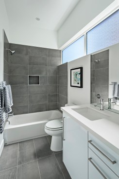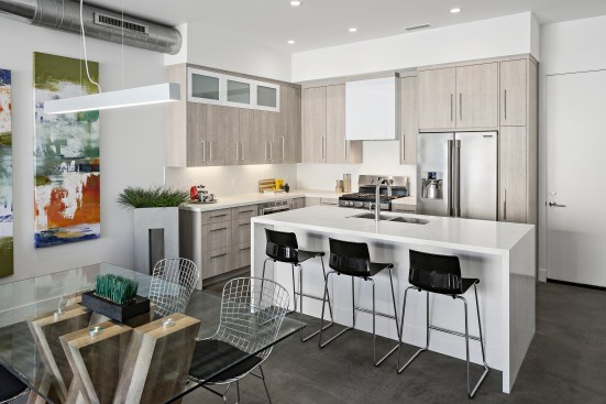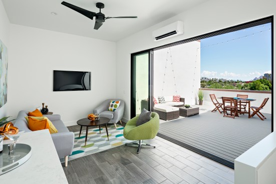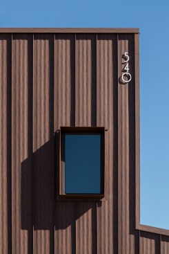 Specific attention was paid to the placement of windows and rooms, providing consistent “eyes on the street”. The front units have ground floor offices with separate entrances from the home for the increasing number of people who have home businesses. Custom cor-ten steel window boxes poke out from the standing seam metal skin to provide additional shade for these front facing windows. All of the units have 10 foot ceilings and large sliding glass doors that open up the inside to private courtyards, making the spaces live larger than their footprint.