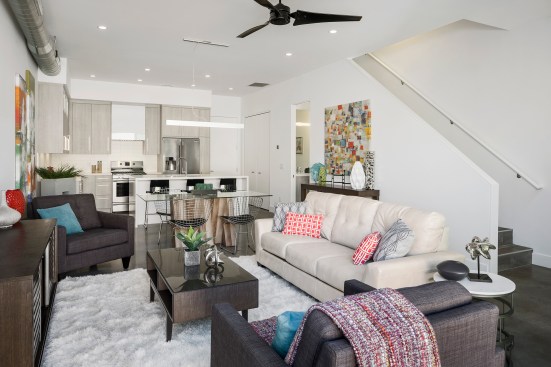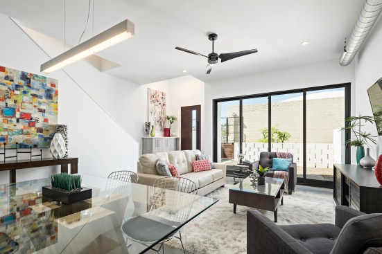 The 3 story, stacked floor plans break down into living on the first floor, bedrooms on the second floor, and a flex space on the third floor. This flex space features a wet bar and opens out onto a trex covered roof deck with a built-in grill, creating an ideal indoor/outdoor entertaining space that takes in amazing views of the city, mountains, and desert sky beyond.