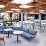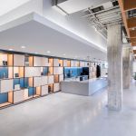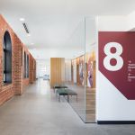 The fresh finishes and updated structural elements fill the space, creating a contemporary aesthetic which seamlessly complements the art deco inspired designs. Most of the original concrete structure was left exposed, as was the structural steel added during the retrofit, giving the space an added industrial look. Entering the office levels from the paseo, guests pass through a 95’ high atrium cut into the building as a ‘jewel box.’ The atrium serves as the central public gathering space and features natural lighting and views between the offices and the ground floor. On the office floors, circulation and break spaces surround the floor-to-ceiling atrium glazing, providing continuity to the large open office concept. Offices are highlighted with high-end soft finishes and furnishings to make the spaces comfortable and perform acoustically. On levels six, seven, and eight, the rooftop terraces cascade creating an indoor and outdoor connection that offers flexible workspace and panoramic views of Oakland and the Bay Area.