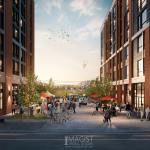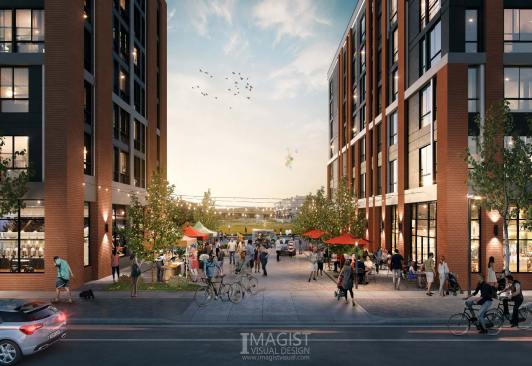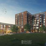 The project scope is five 7-story buildings and two 1-story buildings, located on an urban site in Philadelphia. We provide several renderings from different viewpoint to show the project.