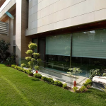 The location of the building on a busy road also meant that the building would have to protect the occupants from the noise and light pollution. This was done by restricting the number of external openings, however double-glazed units of glass were used to add to the light and take advantage of views above the tree crowns on upper floors The interiors were integrated at the planning stage itself since construction scheduling and planning was crucial to coordinate the various local and global vendors.