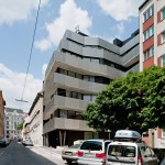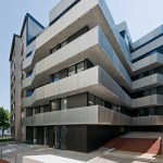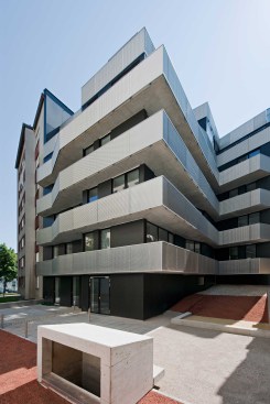 The apartment building is defined as urban topography. surrounding green areas, balconies and terraces extend the living space that is framed by full height french windows.From the elegantly clad outdoor areas the inhabitants enjoy manifold perspectives. The orientation of each apartment`s floor plan facilitates views in two opposite directions.