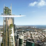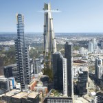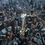 The pinnacle of the design is ‘the cloud’ – a cantilevered structure that houses the public amenities for the hotel (lobby, restaurant, bar, and observation deck), and offers 360° views of Melbourne. Composed of an ETFE membrane façade, it is lightweight and features varying degrees of transparency. Towards the edges, ‘the cloud’ becomes translucent, emulating a real cloud so that it gives the sensation of air and lightness, becoming a blur as it blends into the sky.