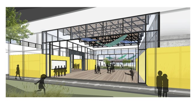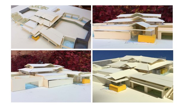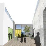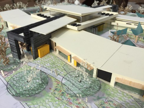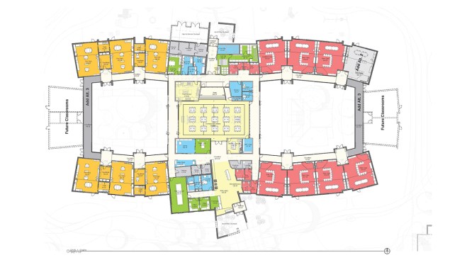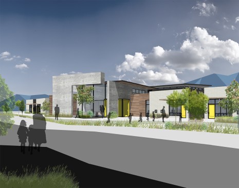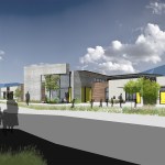 Upon completion of their new award winning facility in Salt Lake City, USDB was excited to maintain momentum and move forward with a much needed building to serve the desire for deaf and blind education to the south. We were tasked with designing a school in a developing area of Springville that worked with site context and conditions, served both deaf and/or blind preschool and elementary students, maintained a similar standard developed by their school in Salt Lake City, and considered lessons learned from the Salt Lake “prototype”. While the Openshaw Education Center was envisioned as a school that also served as community hubs for both the deaf and the blind, the new Springville facility was to be completely focused on the students. After developing several possible schemes and considering options including one that looked like a Q and another that had 4 courtyards, the best concept presented itself as a central spine flanked by classrooms and a courtyard on each side. The spine separates the preschool and elementary courtyards and classrooms to accommodate developmental needs, but by placing the gymnasium at the heart of the building, sliding doors are incorporated, thus allowing the space to open up to both courtyards when desired. While many materials chosen were very similar to OEC, this school incorporates yellow as the focal color, and utilizes a large board-formed concrete wall slicing through the building not only as a wayfinding /textural element but as an opportunity to create entry courtyards to bring the scale down and focus the senses.