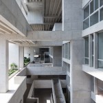 Structure and architectural spaces work together to form a new circulation landscape, which is external. The circulation strategy celebrates the ethos of the Institution, the collective life of the campus, as well as fostering the research life of the individual student and professor. Interaction and overlap are encouraged. Students, professors and administrative staff mingle, within view of one another. The section encourages chance and possibility.