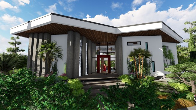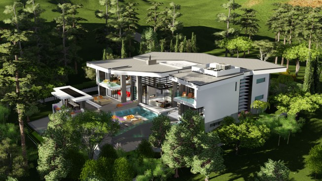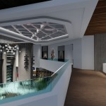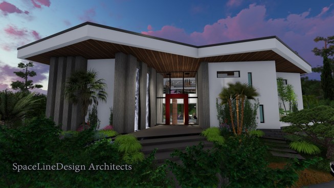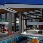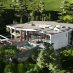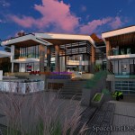 Just 120 miles south of Barcelona lies the tranquil Mediterranean Island of Majorca. Here, on a gentle wooded slope with mountain, forest and sea views, we have carefully situated a modernist 675sm (7,265sf) vacation villa, presenting a formal geometric facade, angularly framing the Main Entry door and double grand waterfalls.