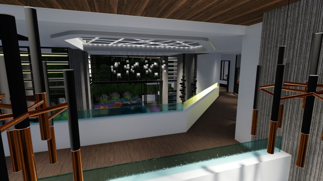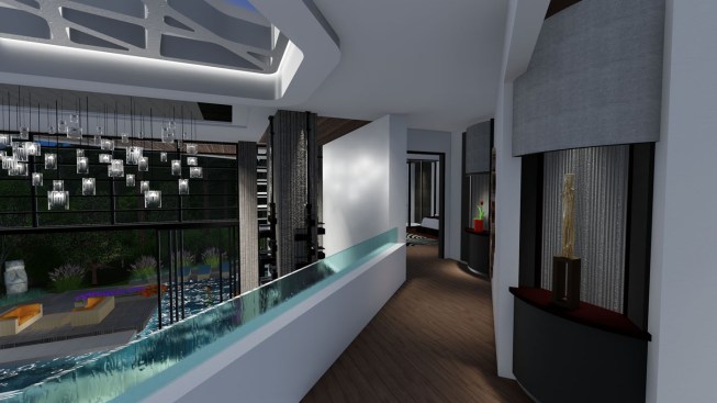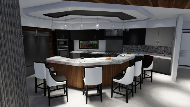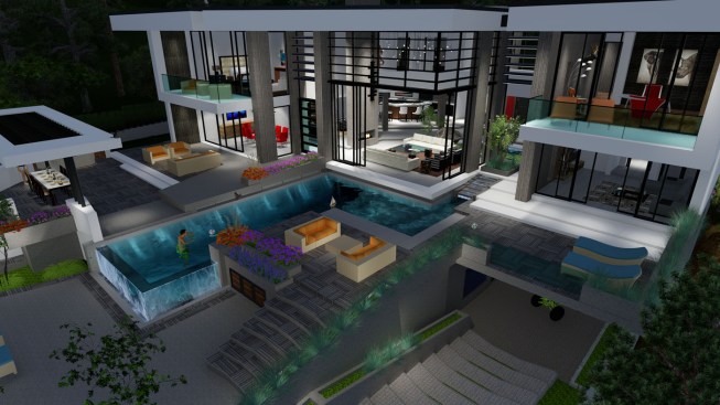 Below grade is a finished basement lounge, with exercise spa and fully equipped service bar with huge window looking underwater into the pool, plus a game room and 8 person theater.