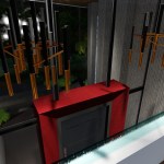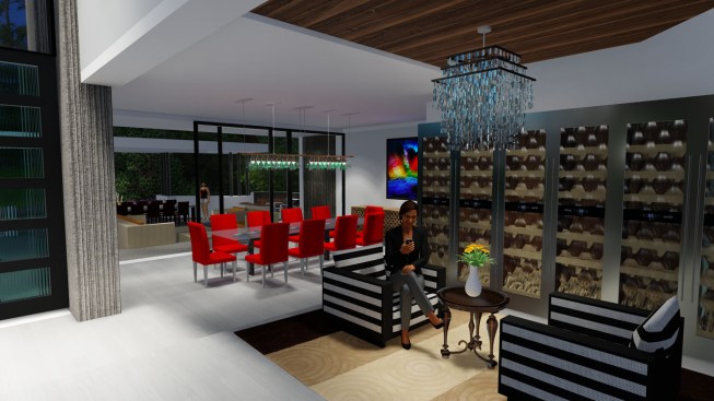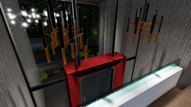 The showpiece here is the massive bronze art-glass entry door where we have applied a rich red-leather ‘picture frame’ wrap on the structural surround.