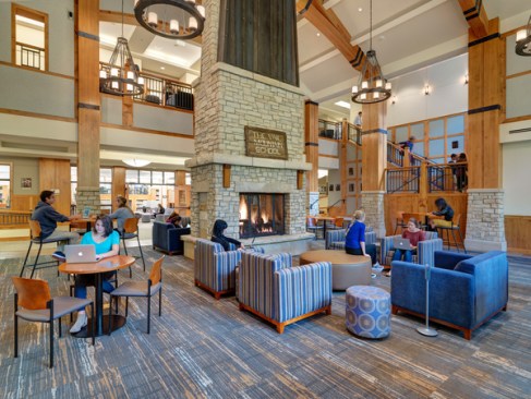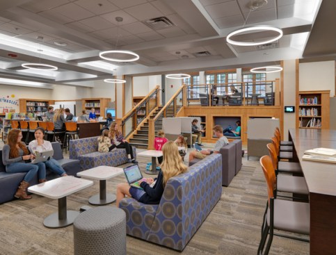 Vail Mountain School, an independent college preparatory school serving grades K-12, contracted Hord Coplan Macht to refresh their existing library and learning commons. The school was looking for a design that was both attractive and functional in the context of 21st Century learning environment. We collaborated with the school to decide on the addition of four glass-enclosed study rooms with integrated technology complemented by new interior carpet and modern lighting and furniture selections. The resulting design designated spaces to study, collaborate and hold group meetings that feel private, comfortable and practical.
