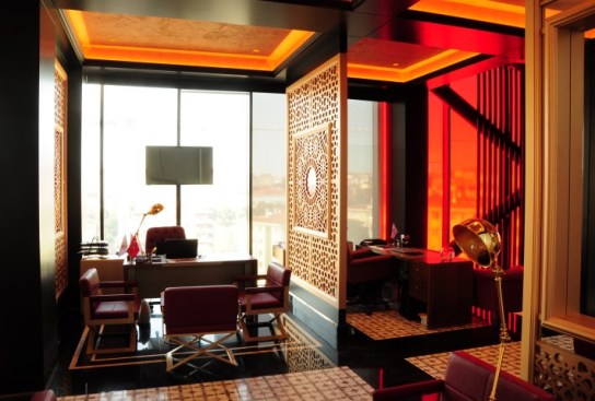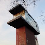 Having a construction area of 730 sqm, Validebag Konaklari Sales Office designed by the Istanbul based design office Studio Vertebra for Dap Construction’s Validebag Konaklari Project in Uskudar, Istanbul, Turkey makes a difference among sales office structures by its vertical form and its design that allows individuals planning to own a home to experience not only the house but also the district they would be residing in. Since sales offices are short-lived structures by their very nature, Studio Vertebra aimed that the design of Validebag Konaklari Sales Office should be remarkable to the highest extent. The office fictionalized a design that makes its presence exclusively felt by its vertically constructed form, and that suggests a feeling of “Look at me, I’m here”. Hence it was targeted that the structure would attract its neighborhood during its short-lived presence. Validebag Konaklari Sales Office allows the user to perceive the construction site and the project neighborhood within the interiors while allowing the individuals thinking of buying a home to observe the district and the location as well. Hence the user will not only be experiencing the house but also the district s/he would be residing in. Whereas the terrace space constructed in Validebag Konaklaiı Sales Office allows the concerned parties to enjoy views of Validebag Grove and Historical Adile Sultan Palace.