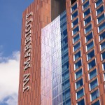 Additionally, Win-Con, Inc. supplied the curtain wall, carrying glass across the adjacent sides of the hotel. The Win-Con Unitized curtain wall system included 200,000 square feet of glass with interior mullions and exterior fins coated in Valspar’s Classic II Fluropon in Bright Silver by Bonnell Aluminum.