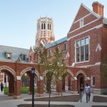 The architectural expression of the College is decidedly Collegiate Gothic, responding to the adjacent 1925 Alumni Hall. In response to the project's scale and implying a layered history, a portion of the building is designed in red-brick Victorian Gothic style relating to the University’s first and most iconic building, the 1875 Kirkland Hall sited directly south of the College. That eastern wing is constrained to embrace a 100-year old Ginko tree. Masonry detailing incorporated throughout the facades and courtyards was designed to a level of detail rarely seen in this era, achieving an authentic example of the craftsmanship of this style. All surfaces – exterior and interior – of the project and its details were carefully considered and executed.